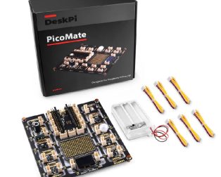 DeskPi PicoMate is an all-in-one and versatile prototyping kit designed for Raspberry Pi Pico and Pico W. It includes one expansion dock for Raspberry Pi Pico and Pico W, 12 detachable modules and all in one-piece of PCB design. All modules are pre-wired to the Pico Dock, no soldering and wiring required and out-of-box. Of course, you can also detach the modules and connect them using the cables included in the box.