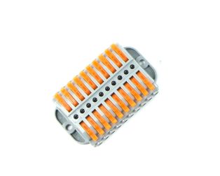 This is a PCT-223-12 0.08-2.5mm2 12 Pole Wire Connector Terminal Block with Spring Lock Lever for Cable Connection.PCT Spring Lever Connector package contains a compact locking wire connector by a spring lever, which is used for single-strand hardwire with 0.08mm to 4mm2 area or soft wire with 0.08mm to 4.0mm2 area (or AWG28 to AWG12). This connector can tolerate the rated voltage up to 600V with an electric current peak of 32A.