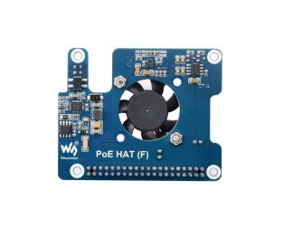 The Waveshare Power Over Ethernet HAT (F) For Raspberry Pi 5, High Power, Onboard Cooling Fan, With Metal Heatsink, Supports 802.3af/at network standard a compact and powerful accessory designed for streamlined connectivity. Compliant with IEEE 802.3af/at standards, this HAT enables Power Over Ethernet functionality, consolidating both network connection and power supply into a single Ethernet cable. Its compatibility with the Raspberry Pi 5, along with a fully isolated switched-mode power supply (SMPS), ensures safety and reliability. Featuring an onboard active cooling fan and metal heatsink, it efficiently dissipates heat, making it an excellent choice for users seeking enhanced power options and simplified cable management in their Raspberry Pi 5 projects.